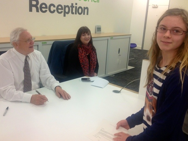 And she did get to see him, and listen to him speak for five whole minutes. And we did pick the right line-up, so she was one of the last of the few that were able to say a quick hello and get an autograph and photo. She had written to Sir David a few months ago telling him of her love of animals, her concerns about the environment and how it might affect them, and about how she makes little mini documentaries on her iPod, inspired by the hours spent watching documentaries like Planet Earth, and The Blue Planet. She did receive a lovely response from his daughter as he was overseas filming, but now she has her letter signed personally by the man himself.