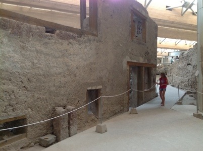 It occurred to me as I finished reading the email that we had been to the “Dig” archeological museum in York where our own little students had a similar experience. They were able to dig up real artifacts from York’s Roman occupation, it’s Viking era, and it’s Tudor period. I was pleased to make the connection, so I started to tell the teacher about it in my response email. Then I remembered we had also been to the current Roman excavation of Vindalanda near Hadrian’s Wall. Then I thought about our brush with The Acropolis, our tour of The Roman Colosseum, and finally our visit to ancient Akrotiri in Santorini where we actually walked on the streets that had been buried in volcanic ash for the past 3,500 years.