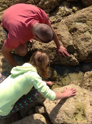 We have been here for the past few days, and it has actually been sunny and warm for the most part. Not hot like it is on PEI right now, but warm enough for the kids to enjoy the beaches and get some colour – very pleasant, and not at all sweaty! It has been great for our kids to play here with their cousins. Darragh is especially impressed by the rocky coves and caves. Liah is enjoying them as well, but she did quietly and very diplomatically remark today, “Its funny how people from England think this is sand” (referring to the courser, pebbly sand that is typical in the local bays).