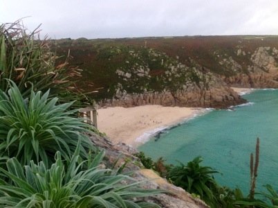So, before I even start on Macbeth and the incredible theatre at which we saw it last night, can you just look at that picture?!? Who would believe this is in England? They don’t call it the Cornish Riviera for nothing, that’s for sure. I took this pic from the steps of the theatre. Which sounds weird, I know, but not when you realize the theatre is outdoors, carved into the side of a cliff. I am sure there is no more impressive theatre anywhere in the world. And it is made more so by the fact that one woman, Rowena Cade, spent from 1931 to 1983 planning, financing, and building this theatre almost single-handedly. It is incredible; seats carved into the side of the rock, a stage that looks like something constructed by Romans, and the unparalleled view of the rugged cliffs, turquoise water, and sandy coves behind it.