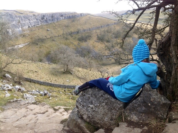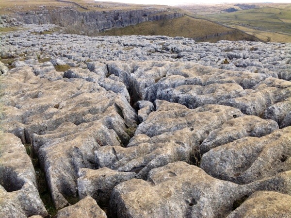But the best one yet, I think, was a recent trip to Malham Cove in the Yorkshire Dales National Park. The place itself is beautiful; you walk across sheep-manicured fields and descend into a valley flanked by an 80 metre high curved limestone crag formed by a waterfall after the last ice age. It’s when you climb up to the top that the geometry happens; it is covered by limestone “pavement”, and is one of the few places in the world you can see this pattern of fissured rock known as clints and grykes. The actual lumps of limestone (clints) are shaped by deep fissures (grykes) formed by the flow of water from Malham Tarn, and deepened by the slightly acidic rainfall. Liah pointed out, and then jumped on, a trail of triangles, parallelograms, kites, trapezoids, squares and rectangles – not because I asked her to, just because she noticed, and we had the shared experience of learning the names of these shapes earlier in the week. So much more fun than drawing them on dot paper, and well worth my two days of very stiff calf muscles…